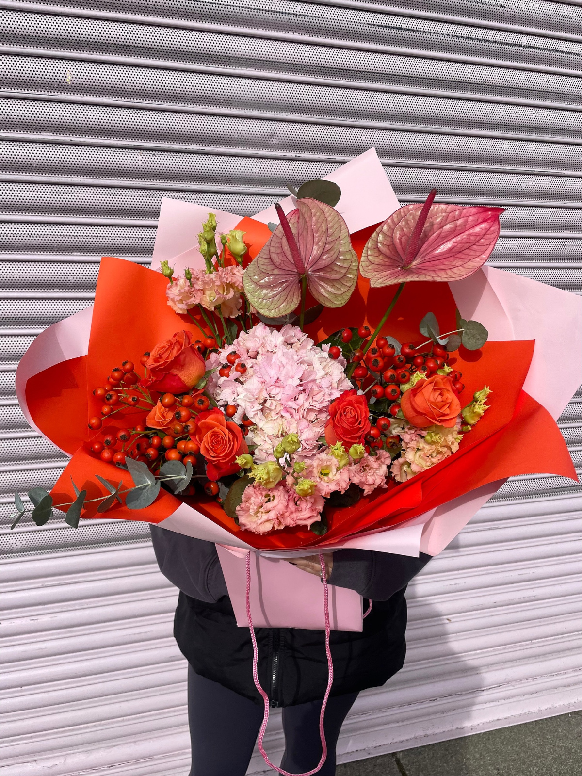 A mix of flowers from our Autumn Collection, chosen by our in-house florist from our daily fresh stock in the colours of pink, orange & green.