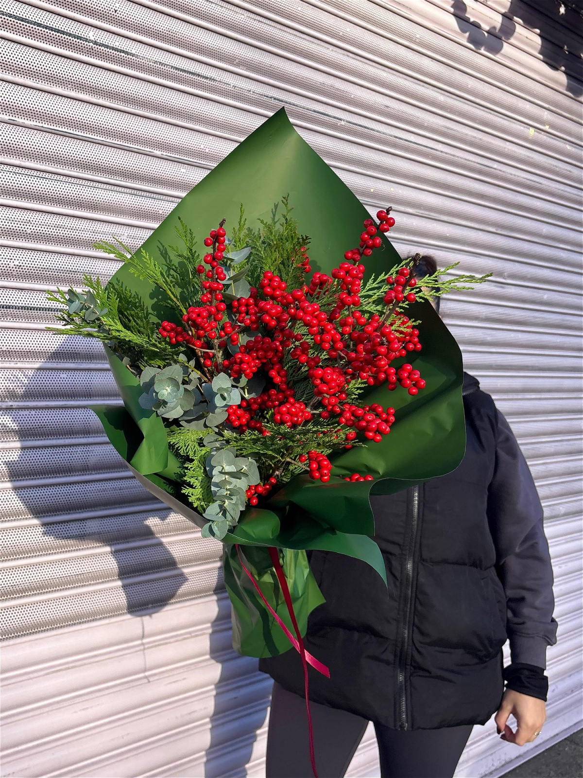 Winter berries and a gorgeous mix of Christmas foliage. The perfect gift for a loved one or even yourself to add a pop of Christmas to your home on the lead up to festive season. Made to add to your own vase.
