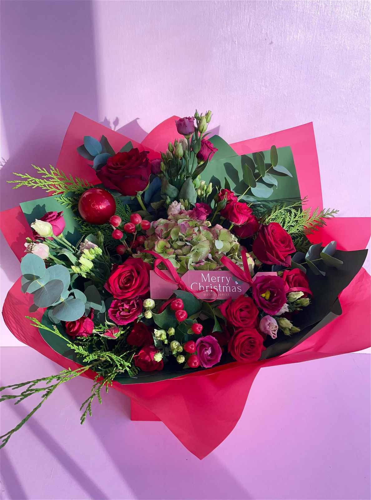 This Christmas we have a mix of festive flowers & foliage chosen by our in-house florist from our daily fresh stock in the colous of Red & Green.